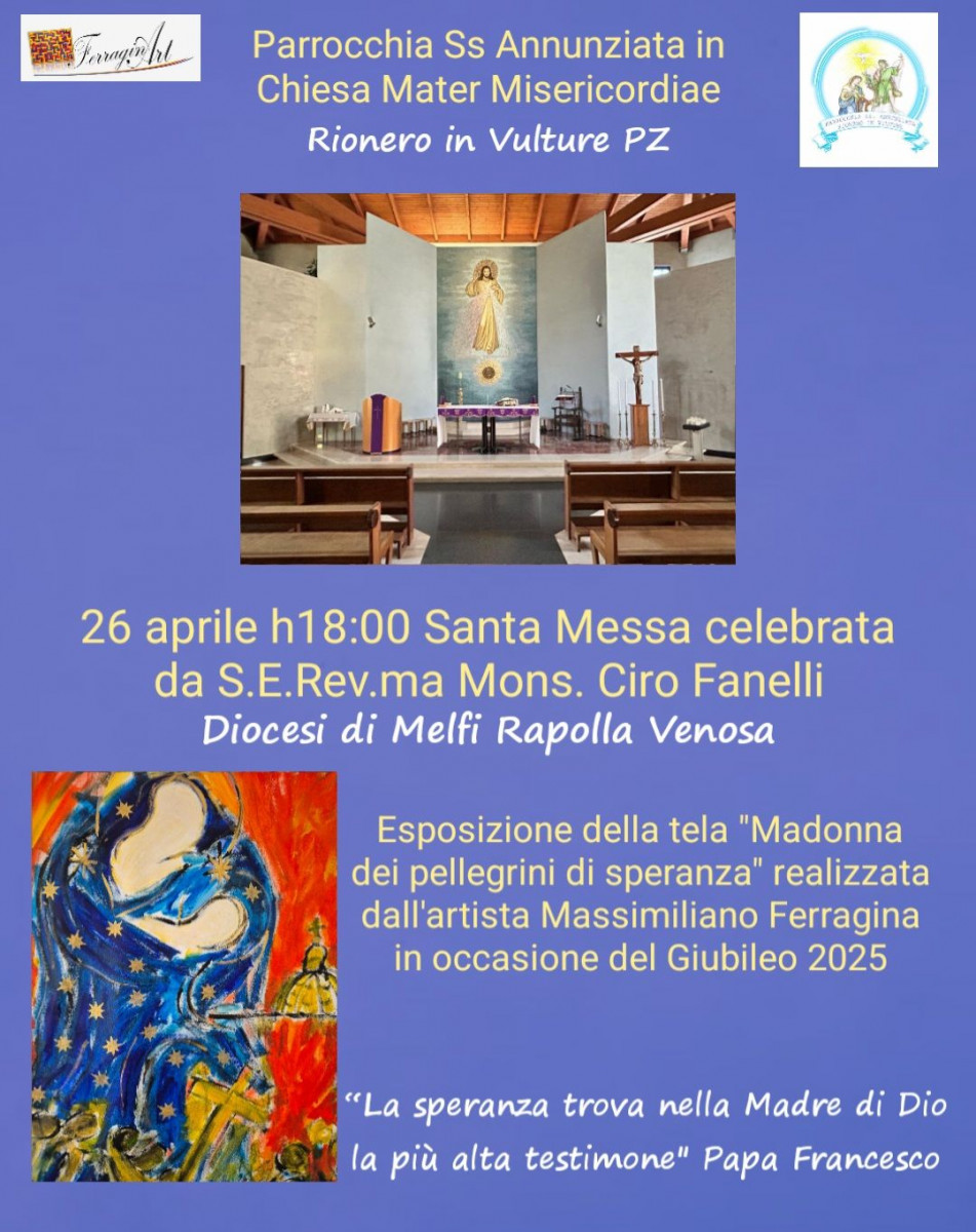 Massimiliano Ferragina ha realizzato la pittura parietale del presbiterio nella Cappella dell'aeroporto di Fiumicino